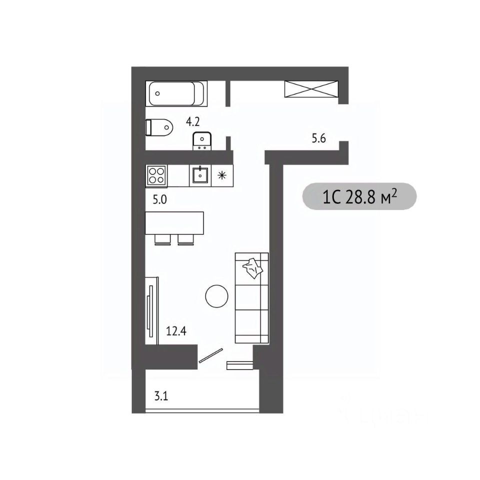 Студия, 28,8 м²