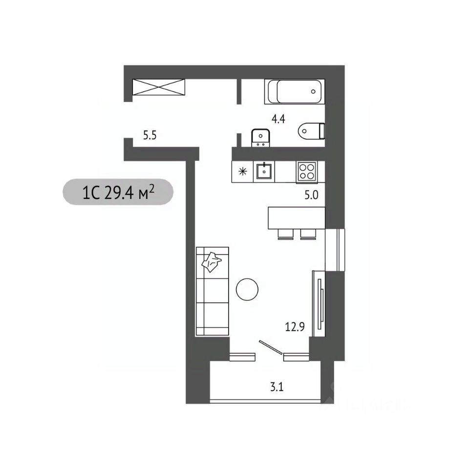 Студия, 29,4 м²