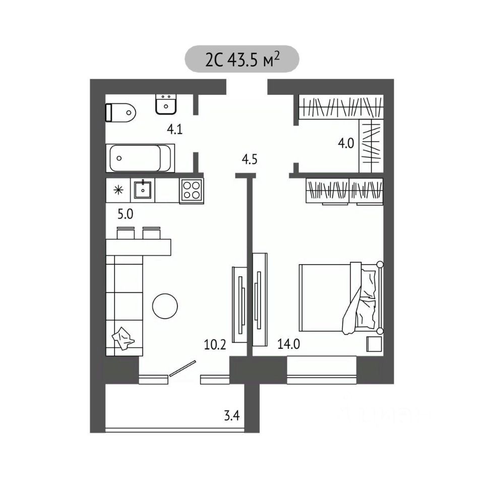 Общая площадь43,5 м²
