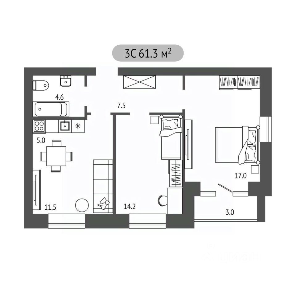 Продаётся 3-комнатная квартира в строящемся доме (Дом 1), срок сдачи: I-кв. 2028, общей площадью 61.3 кв.м., на 4 этаже. Новый жилой комплекс "Загорские Кварталы" от Специализированного застройщика "Реновация" расположен по адресу: пос. Загорский, по ул. Речная.
