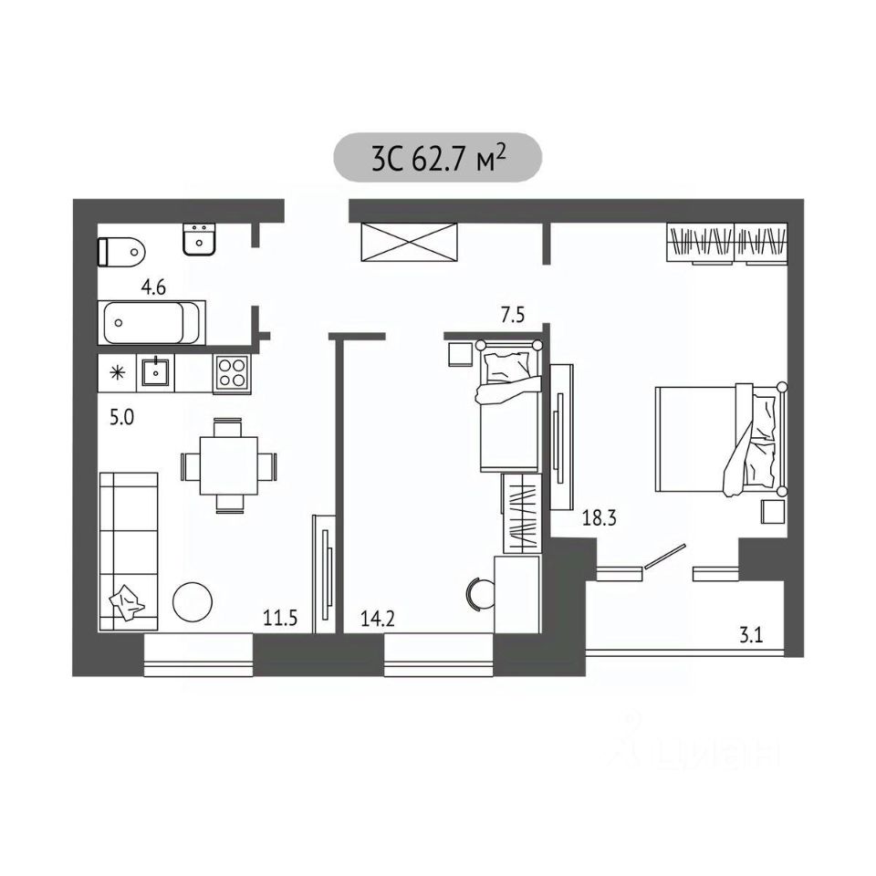 Продаётся 3-комнатная квартира в строящемся доме (Дом 1), срок сдачи: I-кв. 2028, общей площадью 62.7 кв.м., на 1 этаже. Новый жилой комплекс "Загорские Кварталы" от Специализированного застройщика "Реновация" расположен по адресу: пос. Загорский, по ул. Речная.