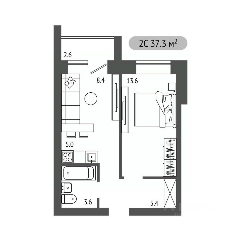 Общая площадь37,3 м²