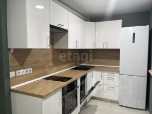 Кухня оборудована встроенной мебелью и всей необходимой техникой: посудомоечной машиной, духовым шкафом, варочной панелью и вытяжкой.