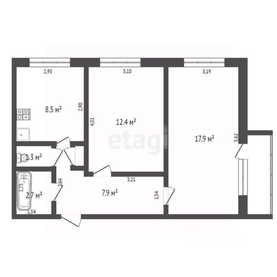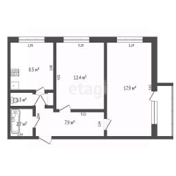 Общая площадь 51кв.м. просторная кухня 8.5 кв.м