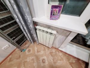 Просторная кухня -8 м2. На кухне расположен подоконный холодильник. Установлены водосчетчики и водонагреватель на 80 литров.