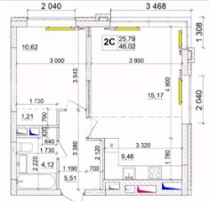 Площадь: 46,2 кв.м.