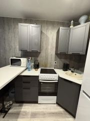 Квартира с готовым ремонтом, оборудована необходимой техникой и мебелью. Окно с двумя распашными створками и плотными рулонными жалюзи. Входная дверь имеет хорошую шумоизоляцию и качественные замки.