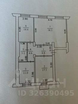 38,3 в.м.-гостиная, которая плавно переходит в зону рабочего кабинета 17,5 кв.м.-спальня; 14,4 кв.м.-детская комната;