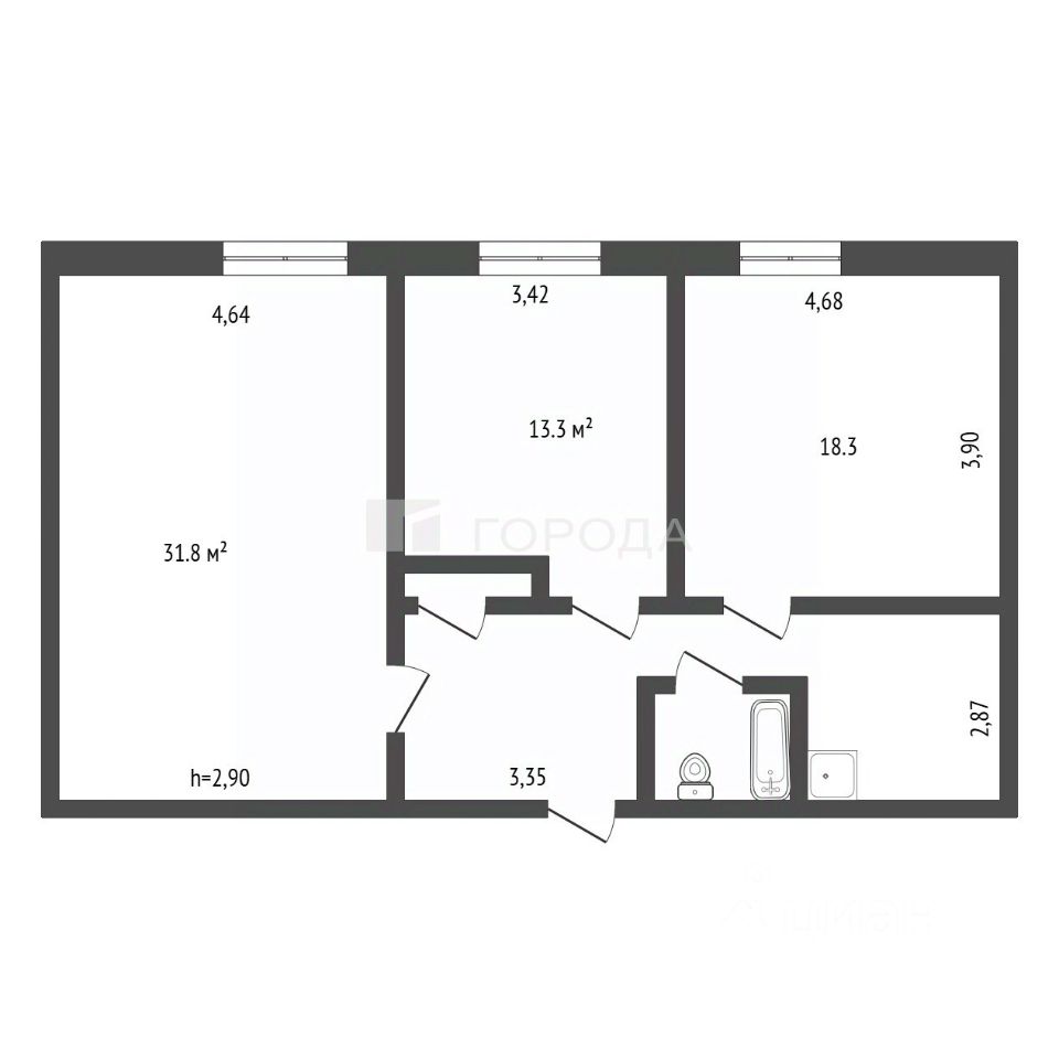 Окна выходят на улицу, а расположение квартиры на среднем этаже делает её удобной для семей с детьми. Совмещённый санузел — практичность и экономия пространства.