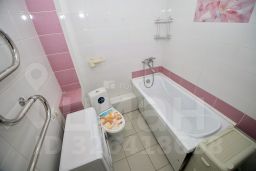 Совмещённый санузел, в кафеле, обеспечивает удобство и функциональность.