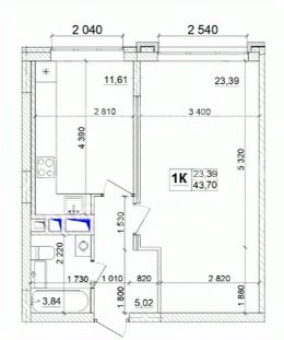 Квартира расположена на 11-м этаже 12-ти этажного кирпичного дома.