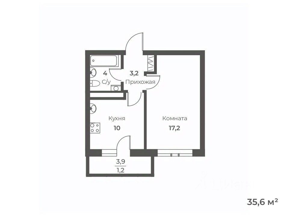 Общая площадь35,6 м²