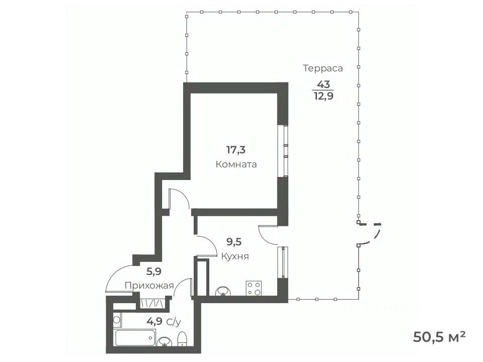 Общая площадь50,5 м²