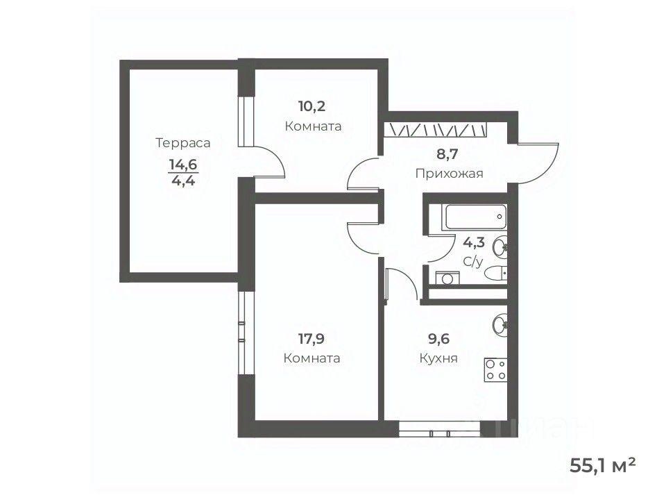 Общая площадь55,1 м²