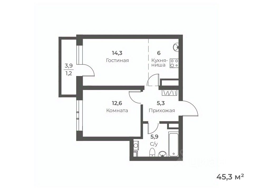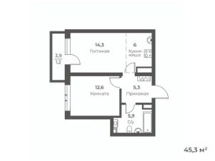 Общая площадь45,3 м²