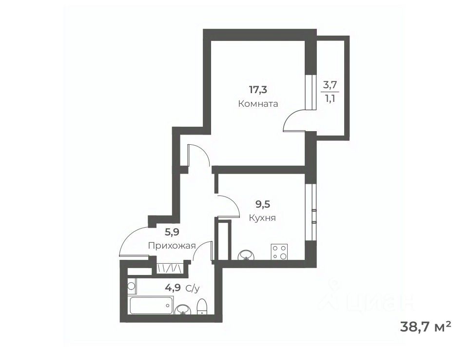 Общая площадь38,7 м²