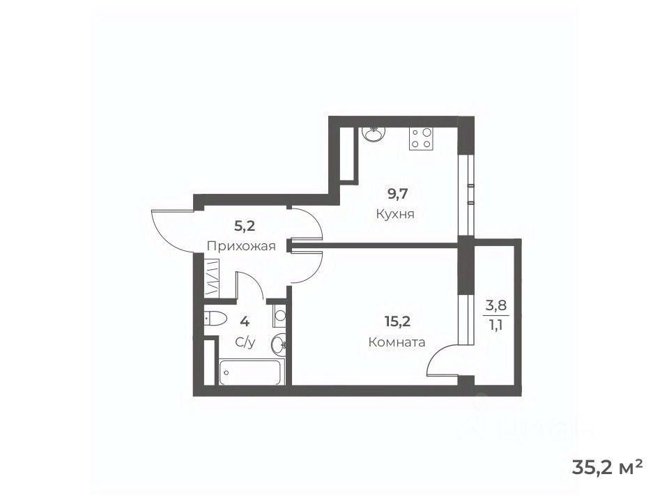 Общая площадь35,2 м²