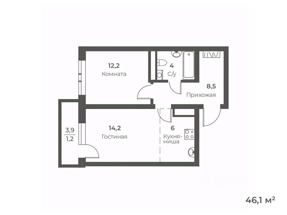 Общая площадь46,1 м²