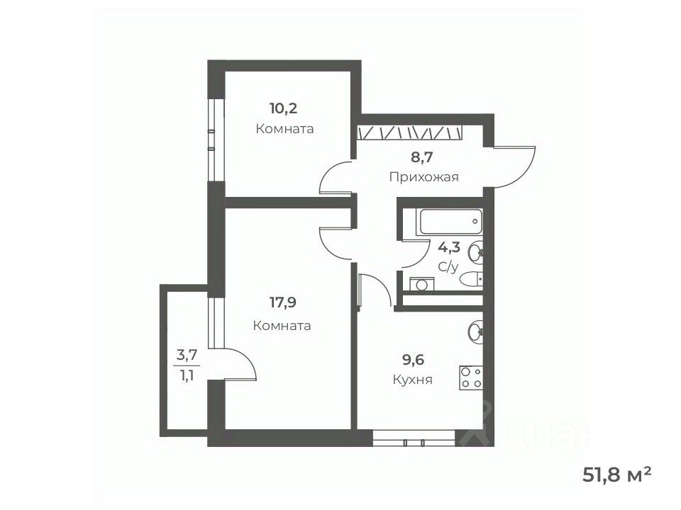 Общая площадь51,8 м²