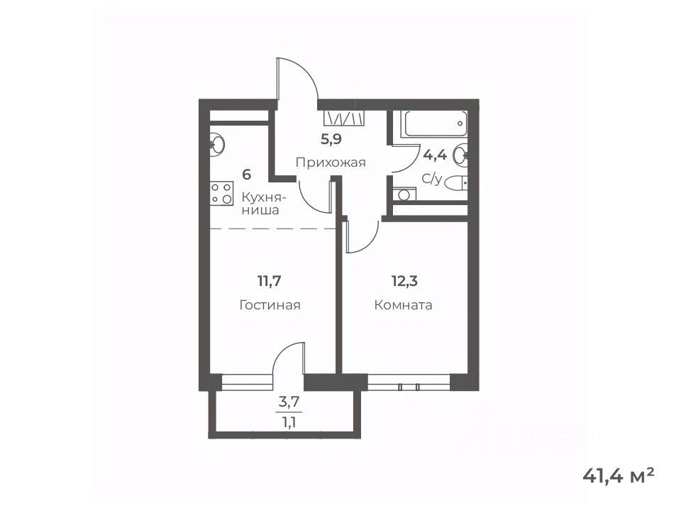 Общая площадь41,4 м²