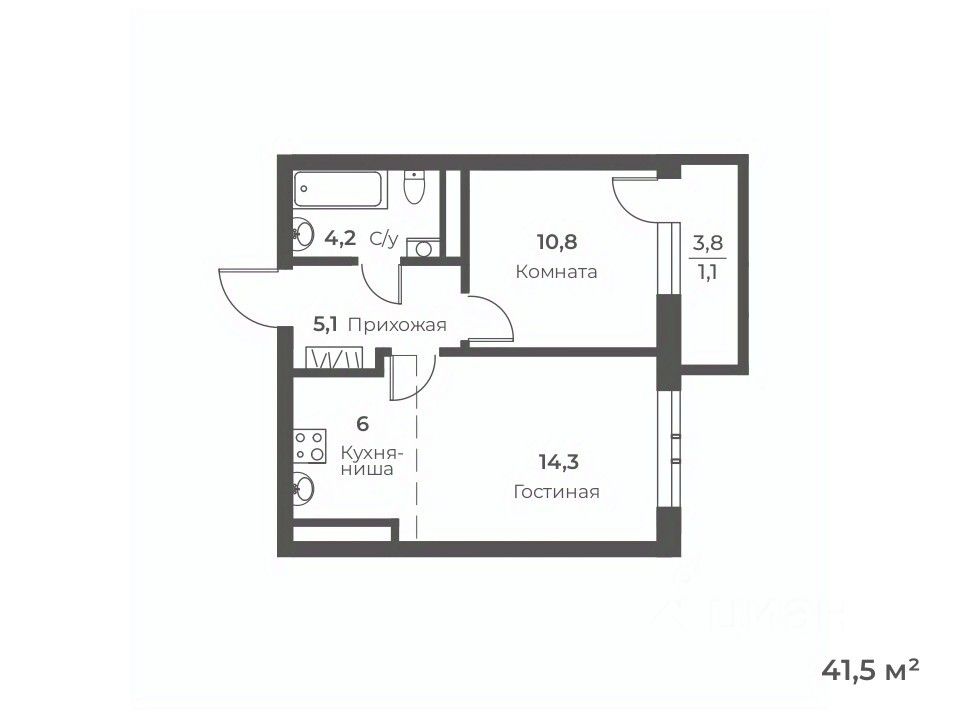 Общая площадь41,5 м²