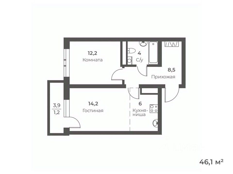 Общая площадь46,1 м²