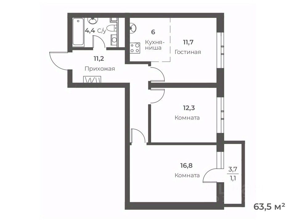 Общая площадь63,5 м²