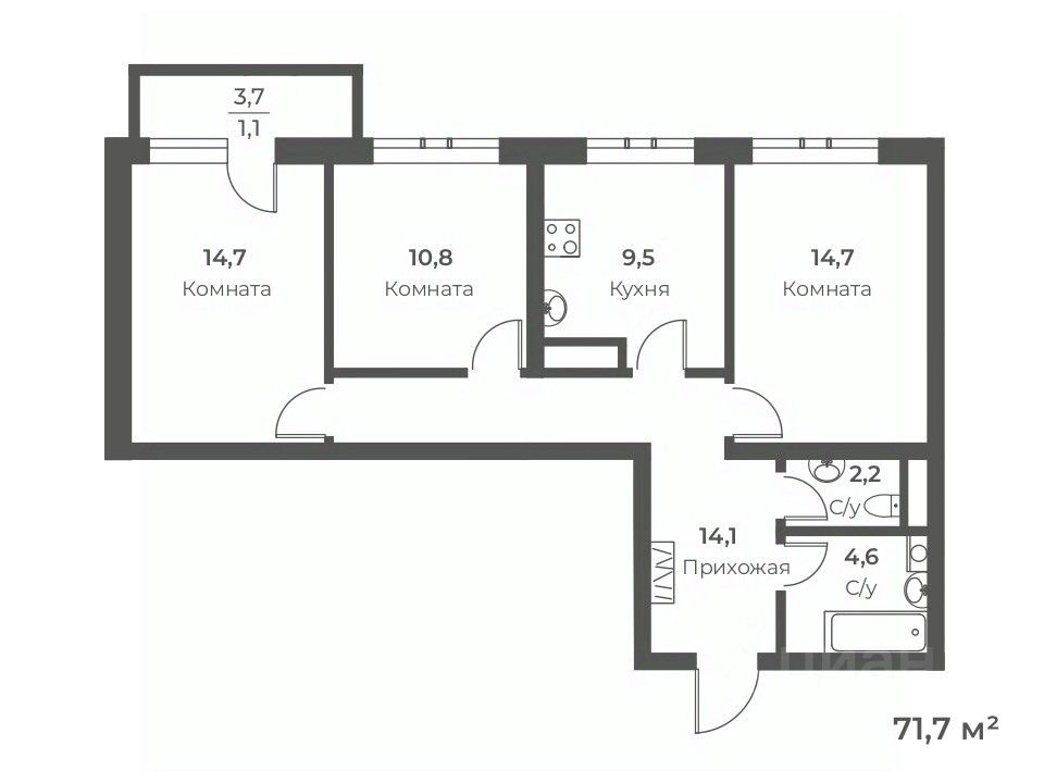 Общая площадь71,7 м²