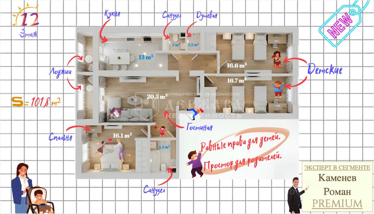 Эта квартира точно удовлетворит запрос большой многодетной семьи, которая ценят тишину и комфорт.