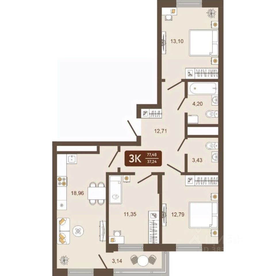 Продаётся 3-комнатная квартира в строящемся доме (Дом 12), срок сдачи: IV-кв. 2026, общей площадью 77.48 кв.м., на 9 этаже. Новый жилой комплекс "Маяковский" от Специализированного застройщика "Центр-К" расположен по адресу: г. Новокузнецк, по ул. Макеевская.