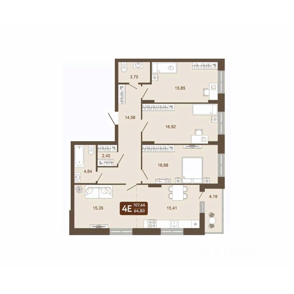 Общая площадь107,66 м²