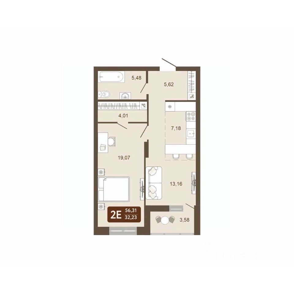 Общая площадь56,31 м²