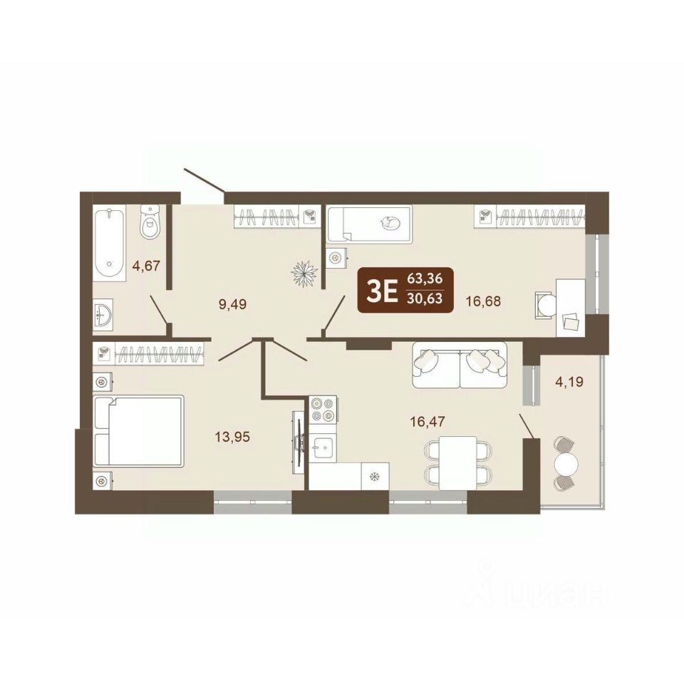 Общая площадь63,36 м²