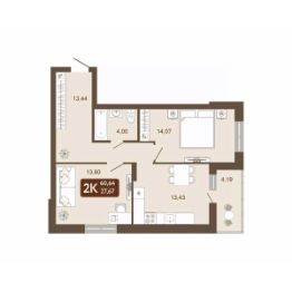 Продается 2-комн. квартира, 60,64 м²