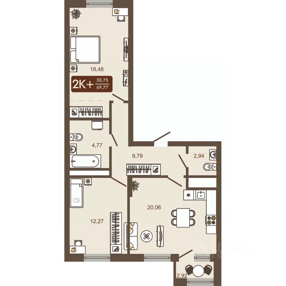 Продаётся 2-комнатная квартира в строящемся доме (Дом 12), срок сдачи: IV-кв. 2026, общей площадью 69.77 кв.м., на 13 этаже. Новый жилой комплекс "Маяковский" от Специализированного застройщика "Центр-К" расположен по адресу: г. Новокузнецк, по ул. Макеевская.