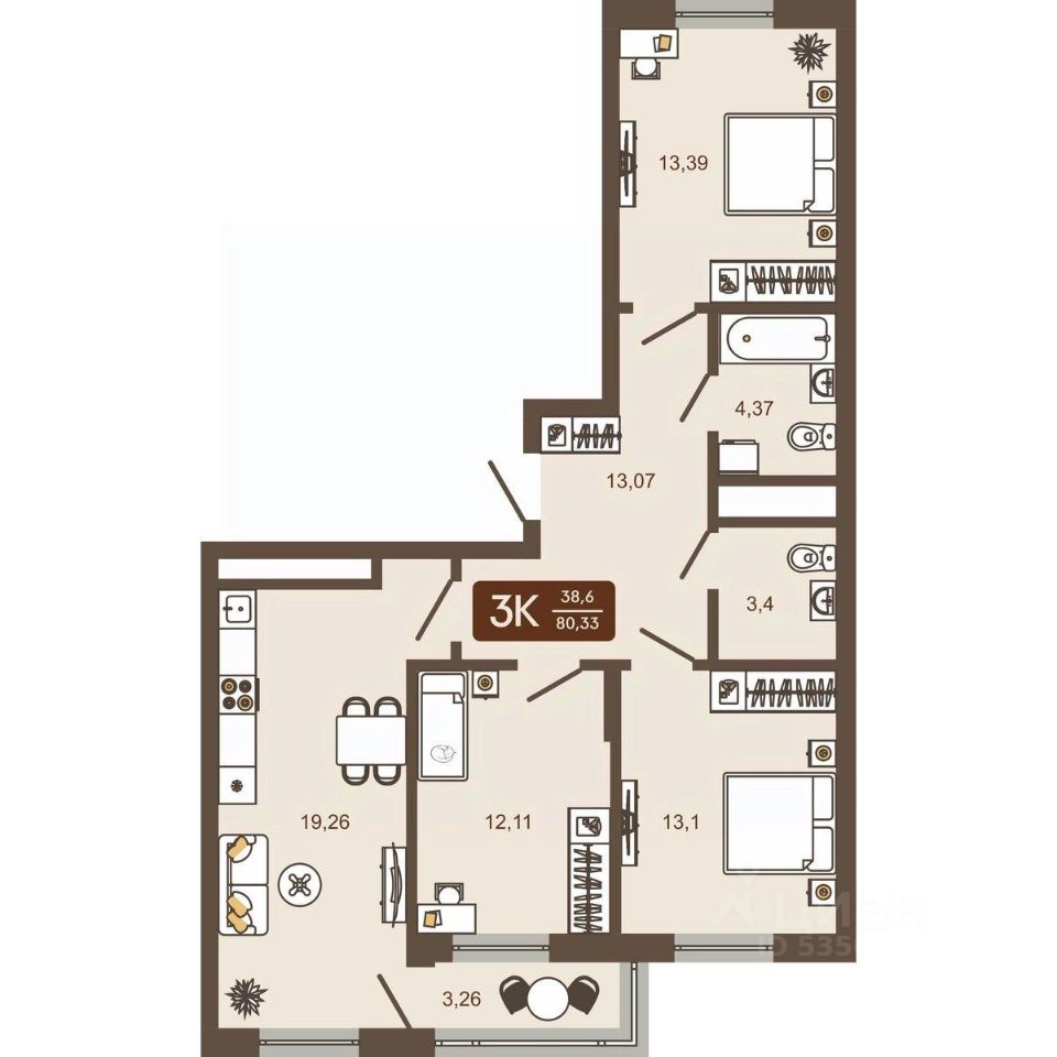 Продаётся 3-комнатная квартира в строящемся доме (Дом 12), срок сдачи: IV-кв. 2026, общей площадью 80.33 кв.м., на 3 этаже. Новый жилой комплекс "Маяковский" от Специализированного застройщика "Центр-К" расположен по адресу: г. Новокузнецк, по ул. Макеевская.