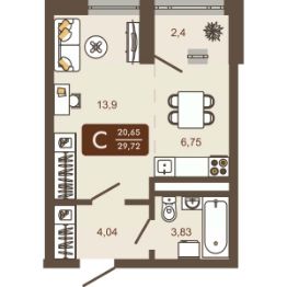 Общая площадь29,72 м²