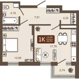 Продаётся 1-комнатная квартира в строящемся доме (Дом 12), срок сдачи: IV-кв. 2026, общей площадью 46.94 кв.м., на 12 этаже. Новый жилой комплекс "Маяковский" от Специализированного застройщика "Центр-К" расположен по адресу: г. Новокузнецк, по ул. Макеевская.