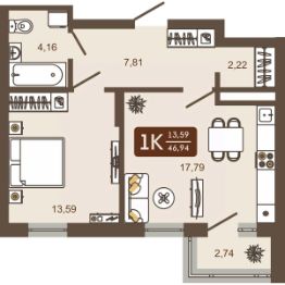 Продаётся 1-комнатная квартира в строящемся доме (Дом 12), срок сдачи: IV-кв. 2026, общей площадью 46.94 кв.м., на 15 этаже. Новый жилой комплекс "Маяковский" от Специализированного застройщика "Центр-К" расположен по адресу: г. Новокузнецк, по ул. Макеевская.