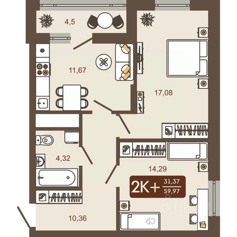 Продаётся 2-комнатная квартира в строящемся доме (Дом 12), срок сдачи: IV-кв. 2026, общей площадью 59.97 кв.м., на 15 этаже. Новый жилой комплекс "Маяковский" от Специализированного застройщика "Центр-К" расположен по адресу: г. Новокузнецк, по ул. Макеевская.
