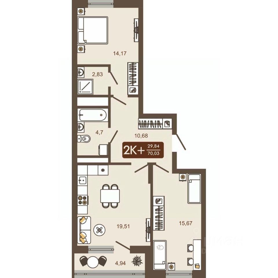 Продаётся 2-комнатная квартира в строящемся доме (Дом 12), срок сдачи: IV-кв. 2026, общей площадью 70.04 кв.м., на 16 этаже. Новый жилой комплекс "Маяковский" от Специализированного застройщика "Центр-К" расположен по адресу: г. Новокузнецк, по ул. Макеевская.