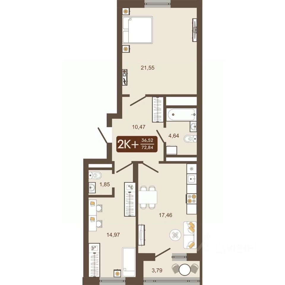 Продаётся 2-комнатная квартира в строящемся доме (Дом 12), срок сдачи: IV-кв. 2026, общей площадью 72.84 кв.м., на 12 этаже. Новый жилой комплекс "Маяковский" от Специализированного застройщика "Центр-К" расположен по адресу: г. Новокузнецк, по ул. Макеевская.