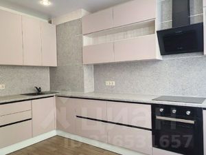 -новый современный кухонный гарнитур в нежно пудровом цвете;