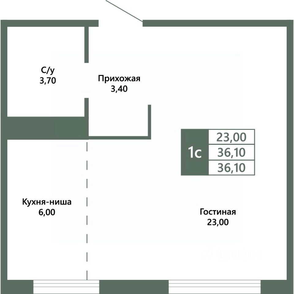 Общая площадь36,2 м²