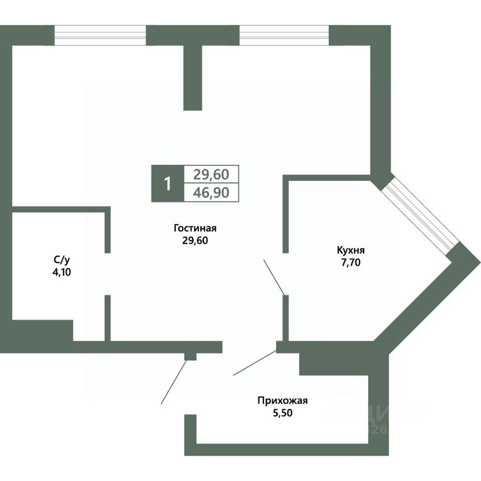 Общая площадь46,9 м²