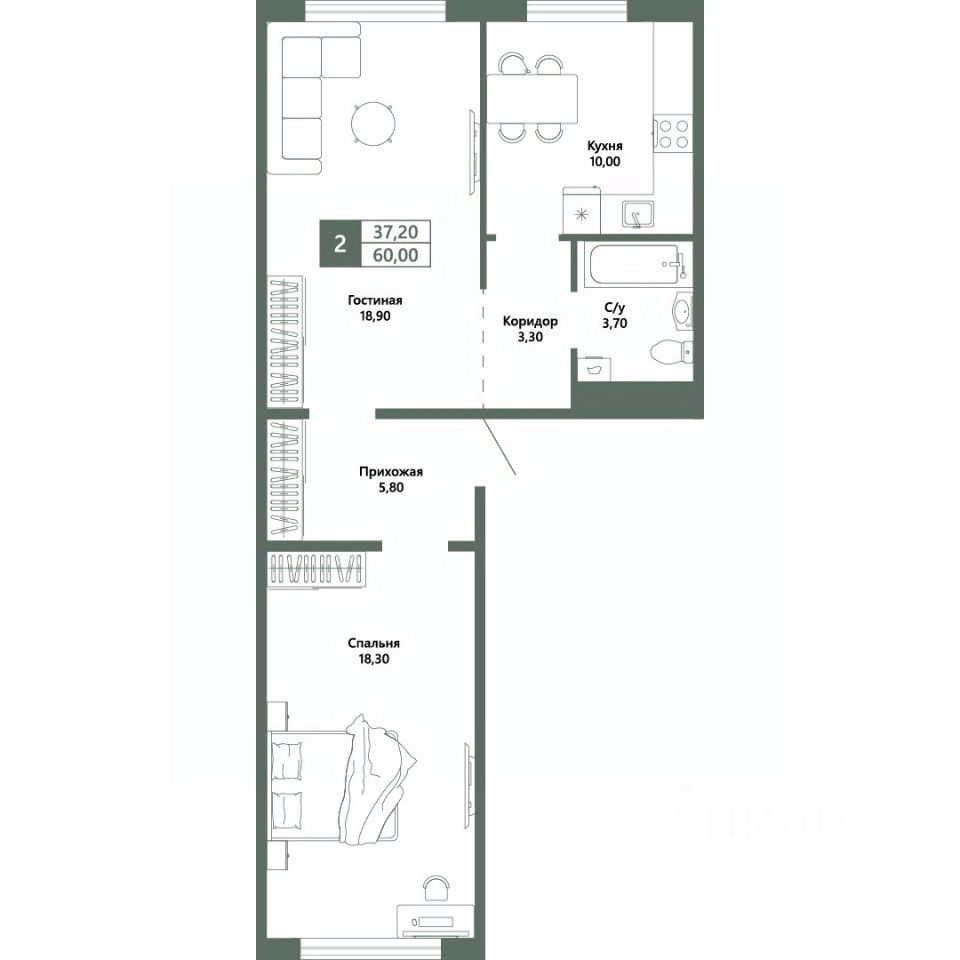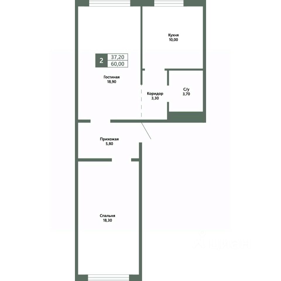 Общая площадь60 м²