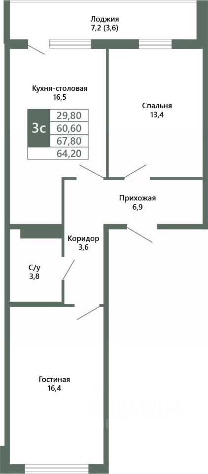 Общая площадь64,2 м²