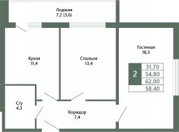 Общая площадь58,4 м²