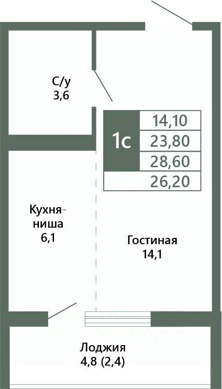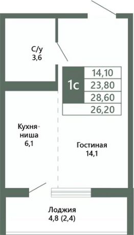 Общая площадь26,2 м²