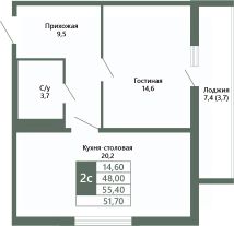 Общая площадь51,7 м²